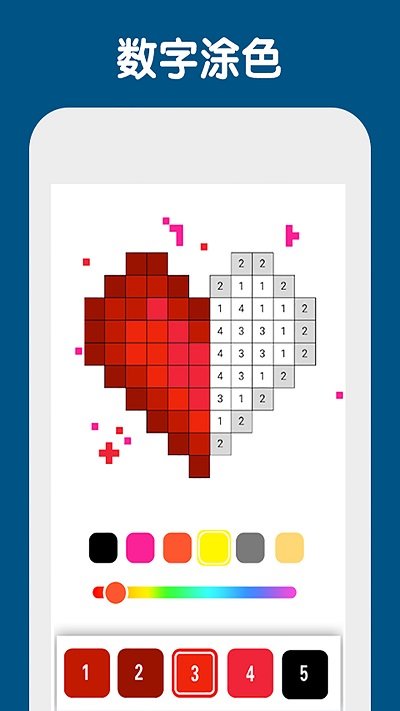 2、游戏中的每个数字对应一个特定颜色,玩家需要根据提示填色,完成像素画作,轻松上手,适合各年龄段玩家;数字与颜色的对应关系清晰明了,即使是初次接触游戏的玩家也能快速掌握玩法,享受涂色的乐趣。