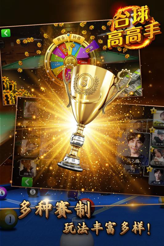 台球高高手九游版是一款以台球玩法为核心打造的全新手游,玩家只要下载台球高高手游戏app,既可以随时随地的与全国网友匹配对战,丰富的玩法模式,激情的比赛生涯玩法,带给玩家最真实的台球对战体验,一定不要错过!此外,游戏还提供了多种语言支持,方便全球玩家无障碍交流。无论是单人练习还是多人对战,台球高高手都能满足你的需求,让你在虚拟的台球世界中尽情挥杆。