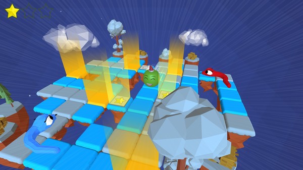 你的任务非常简单: 在每一关穿梭在浮岛上,尽量收集能量星星。但是小心: 狡猾的蛇可能会设置陷阱来抓你!