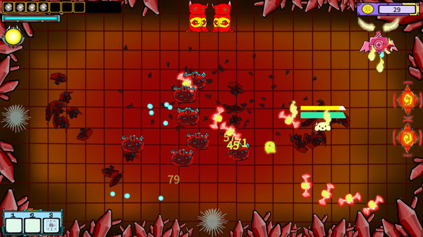 玩家可以杀死敌人来吸收多种掉落的武器,自由组合,通过各种不同的组合来自由定义自己的攻击模式。另外还提供多种角色选择,超多种类的敌人,各种Boss以及创意变身玩法,召唤玩法,各种机关,道具及房间模式,等你来战!