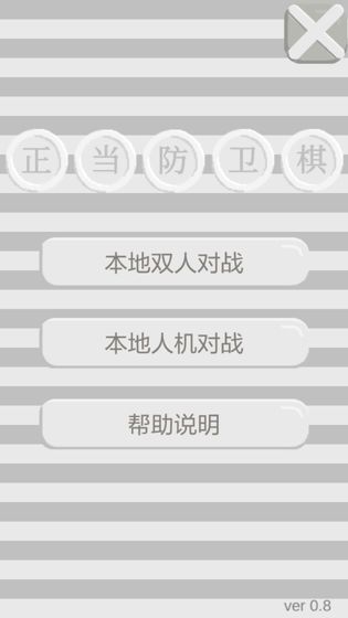 《正当防卫棋》是一款休闲益智游戏。游戏规则根据国际象棋改编。在改编了棋子和棋盘规则的同时额外增加了外部结局规则,通过结局总结而非简单胜负判定,来让游戏行为变得更有意义。