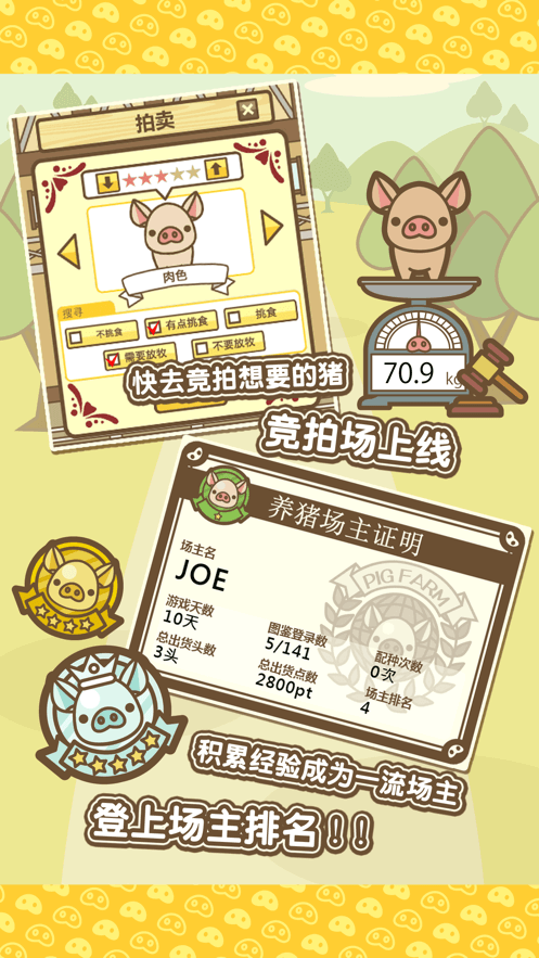 金猪养猪场红包版app这里有着超级可爱的游戏画风,小猪的造型也是如此的可爱生动,到了考验你真正养殖技术的时刻到了,想要赚钱更多的金币吗,想要让你的小猪变得更加强壮吗,赶紧来这里进行自由养成就知道了,保证让你的小猪在出栏的时候能够获得超多人的喜爱,看上去让人爱不释手。
