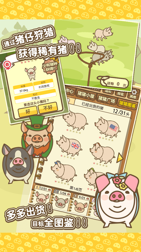 1、前期你的庄园等级比较低,解锁的小猪品种不多,需要你不断升级;