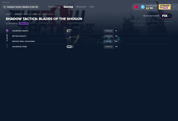 影子战术将军之刃修改器最新版是由MrAntiFun根据玩家需求制作的游戏修改补丁,为玩家提供了无限生命、完美隐身、技能无冷却、无限物品四项修改功能,完美搭配你的忍者团队,充分发挥忍者的特性技能。