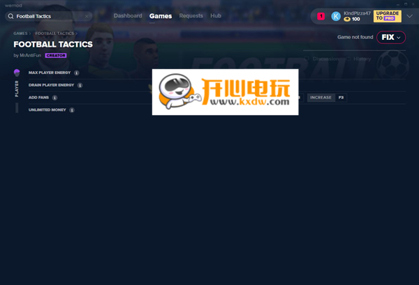 足球战术修改器是由玩家大神制作分享的《足球战术》游戏辅助工具,具有球员满体力、消耗球员体力、粉丝数量设置、无限金钱4项修改功能,让玩家在游戏中更加轻松的打造自己的球队。