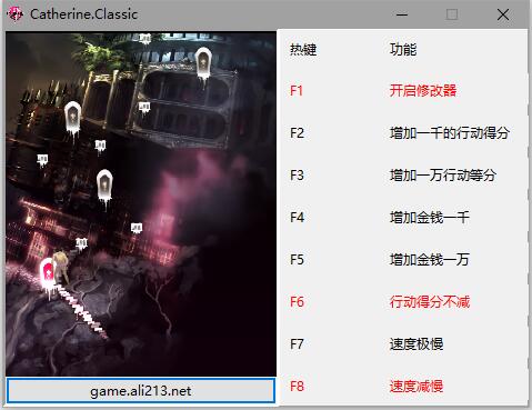 凯瑟琳七项修改器是游戏《Catherine》的免费修改器,通过这款Catherine修改器玩家可以在游戏中获得无限行动分,无限金钱,自定义速度,有需要的玩家欢迎在本站下载使用。
