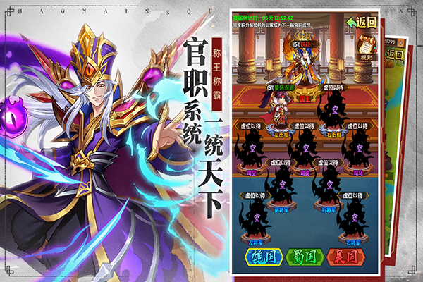 同时我们打破了以往卡牌游戏相对单机的风格,开创了国战系统,玩家可体验真实的战场环境,攻城略地一统天下。