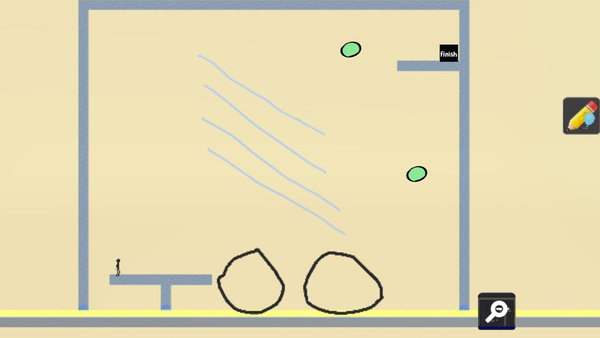 1、在绘画火柴人中展现自己的绘画能力,画出帮助火柴人完成闯关的路