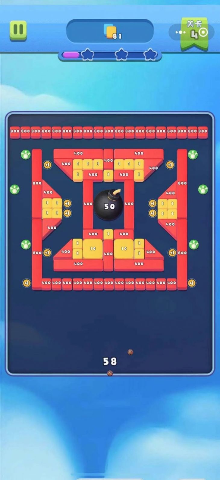 1.消除操作非常简单,移动平台接住球,然后球就能弹起,继续撞块。