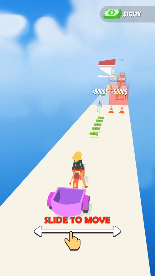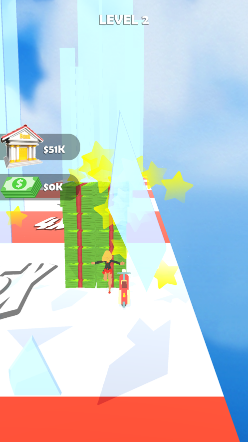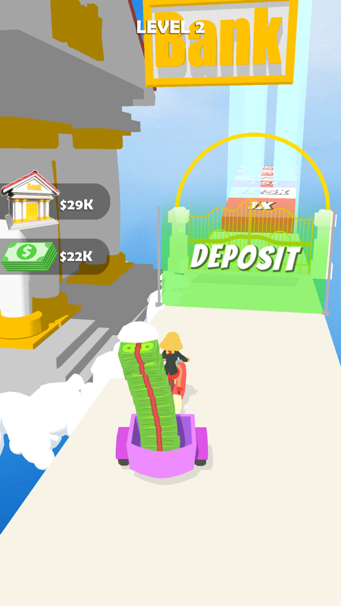 Richy Girl手游作为一款简单有趣的跑酷闯关手游。想要成为有钱的女子?现在你的机会来了,用手指控制女孩的左右移动,收集赛道上的放置的绿钞,遇见收费站时做出你的选择,我们的目标就是要在抵达终点之前收集更多的绿钞。