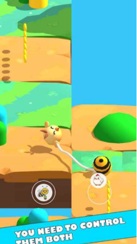 小鸡和蜜蜂手游作为一款超级好玩的休闲益智闯关手游,在游戏里面小鸡和蜜蜂被捆在了一根绳子上,它们需要互相帮助一起度过难关,不断的前进到达终点,有非常多的关卡等着用户来挑战,玩法非常的趣味,十分容易上手,新手用户也可以快速上手玩耍,感兴趣的小伙伴快来下载玩耍吧。