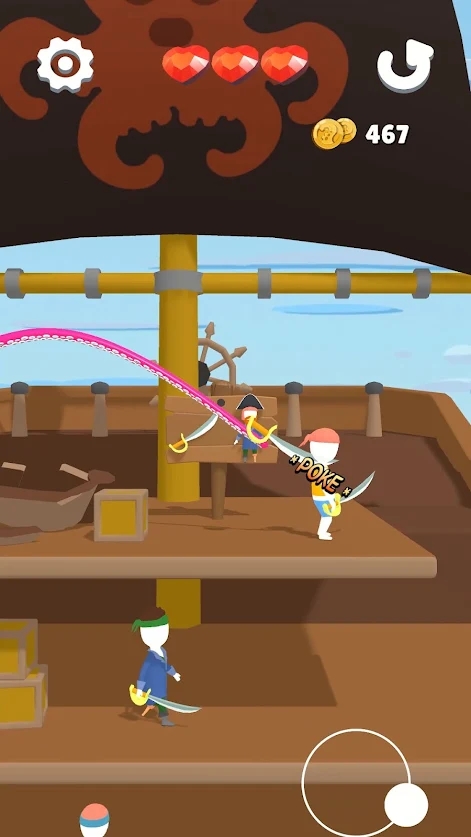 1、返回大海的章鱼碰到了风险,做为骑士,避开障碍物,射断绳索,协助章鱼得到自由。