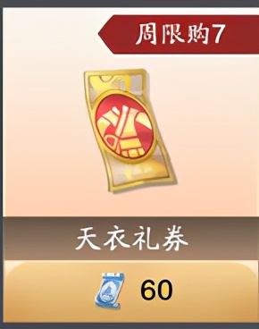 天衣礼券每周限购15个,建议每周至少购买8个和每天免费一抽凑齐15次,拿到15次的奖励。现阶段不推荐购买侠影招募令,可以通过天衣礼券来慢慢进行侠影招募。