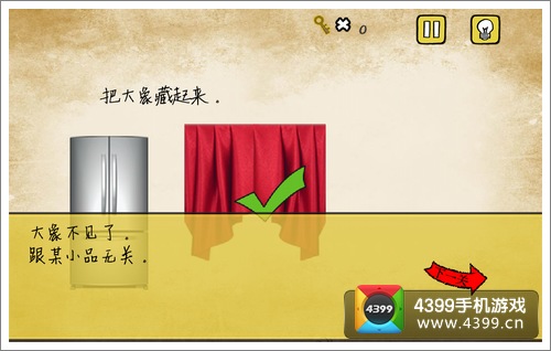 《最囧游戏》让你把大象藏起来,估计很多人都尝试着想把大象藏红色窗帘后面,甚至还有小伙伴想把它藏冰箱里面,太搞笑了,其实要藏大象,跟