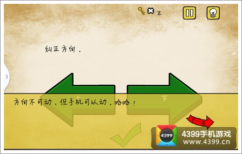 《最囧游戏》纠正方向,这个题目挺简单的哟~却还是有朋友在问怎么纠正方向