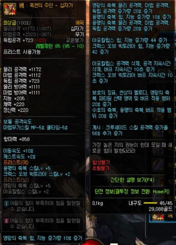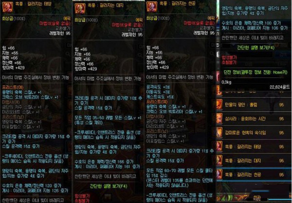 第一种荣誉、勇气祝福、禁断的诅咒 力量智力增加量+4%守护恩赐 体力精神+216启示圣歌,提线木偶 智力+136第二种80~85 lv+1荣誉、勇气祝福、禁断的诅咒 力量智力增加量+4%守护恩赐体力精神+155启示圣歌,提线木偶 智力+126。第三种35-45 技能冷却时间-15%荣誉、勇气祝福、禁断的诅咒 物理攻击力增加量+4%守护恩赐 体力精神+196启示圣歌智力+101,提线木偶 智力+116