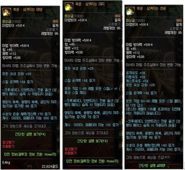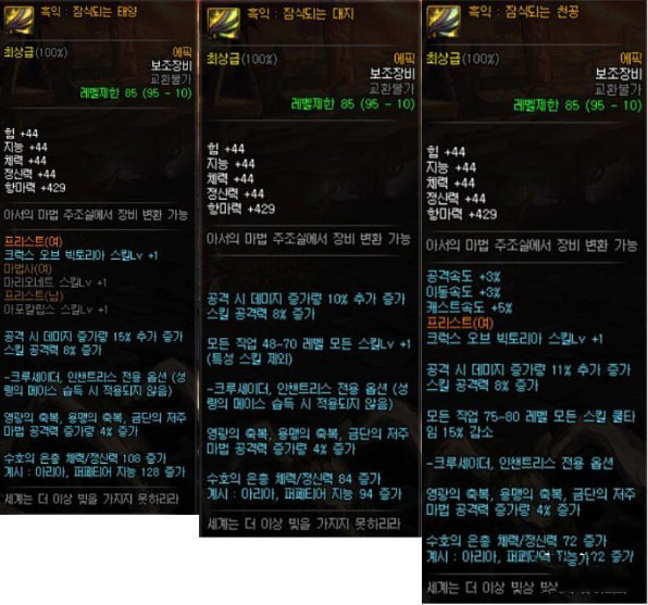 我们只看奶装的属性,第一种是一级一觉,荣誉,勇气,禁断的魔法攻击力增加量+4%守护的恩赐 体力精神+108,启示圣歌,提线木偶智力+128。第二种是一级一觉被动加一级一觉,荣誉,勇气,禁断的魔法攻击力增加量+4%,守护的恩赐体力精神+84,启示圣歌,提线木偶智力+94。第三种是3%攻速移速、5%施放速度,Lv75~80全部 技能 冷却时间 -15%,禁断的魔法攻击力增加量+4%守护的恩赐体力精神+72,启示圣歌,提线木偶智力+108。