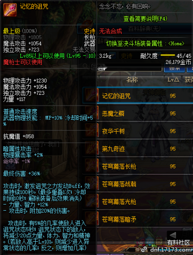 DNF95史诗首饰属性大全 DNF95哈林史诗武器首饰属性汇总。