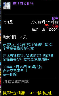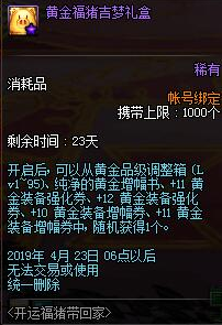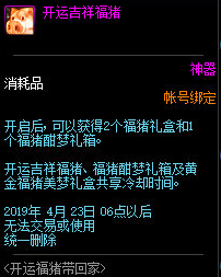 开启后,可以获得1个无期限的[黄金福猪哼哼]宠物。