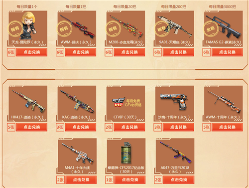 玩家每次成功召回一名指定战友(3月1日至今未登录过游戏),即可领取一张友情卷,最多可获得5张,包月业务仅能兑换其中一个。所有道具都仅能领取一次,角色不能重复获得,如拥有相同角色请勿兑换。稀有物品平均每个整点限量(中午12点~晚21点,领完为止)