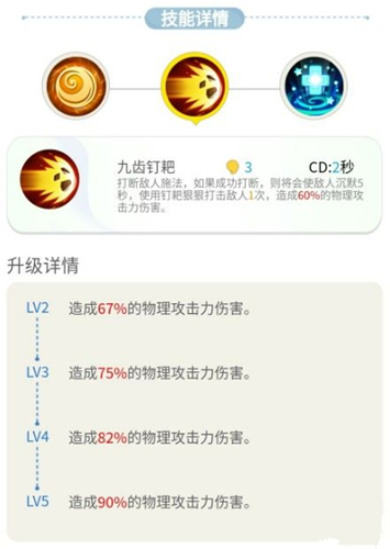 打断敌人施法,如果成功打断,则将会使敌人沉默5秒,使用钉耙狠狠打击敌人1次,造成60%的物理攻击力伤害。