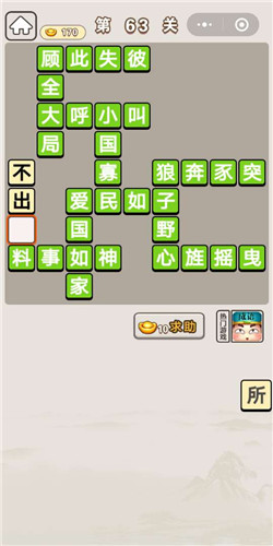到了成语宫廷记第63关,难度虽然没有明显的提升,但是还有存在一定难度的,成语词汇量不多的小伙伴很可能会卡在个别的成语。还不知道的小伙