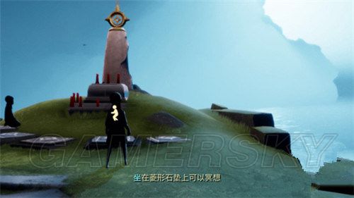 坐在石垫上直至柱子被白色光芒完全覆盖。