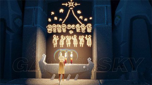 进入遗迹后,把左右两边的蜡烛点燃,可以看到精美的壁画,大家可以保存下来,设计的很精美,可能在以后的游戏里也会有提示的作用,这里尚且不清楚。