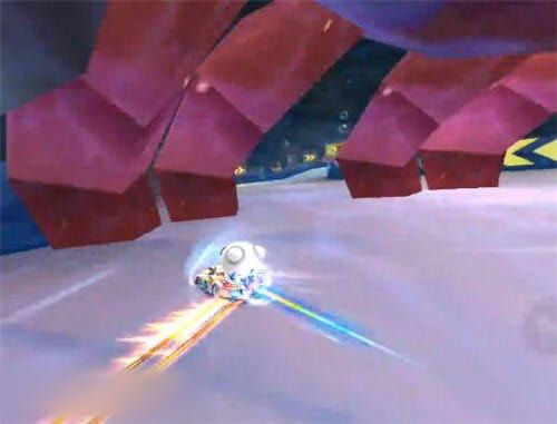 再来就是一大段一大段的地形直道冲刺。第一段魔法通道,保证进入时的车头笔直冲进去后不要随便调整方向。