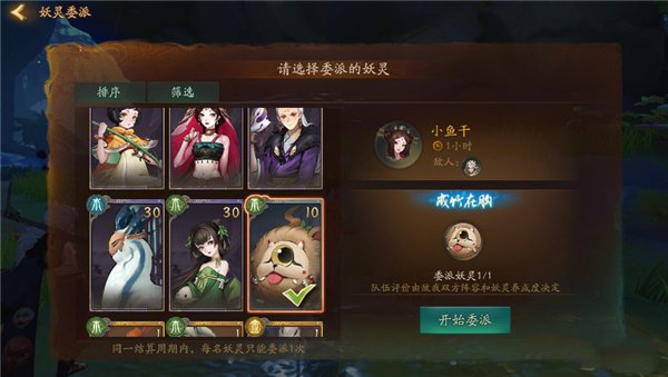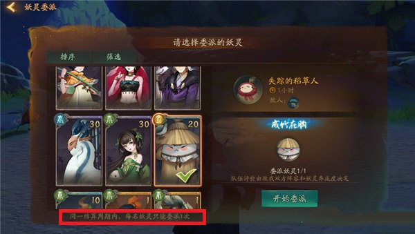 3、48小时内,每位妖灵只能使用一次,已经派遣出去的妖灵无法选择。