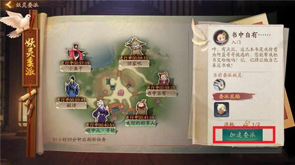1、每过48小时,委派任务会刷新一次。玩家可以派遣自己已有的妖灵去完成任务,获取报酬。