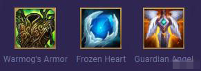 由于潘森的基础数值很强,削弱后依然是5费英雄的标准强度,所以我们在装备搭配时,会希望他变成更硬,让他可以尽快放出大招。因此,狂徒铠甲、冰霜之心是核心装备,一个加强回血能力,一个提高护甲并且加快潘森放技能的速度。