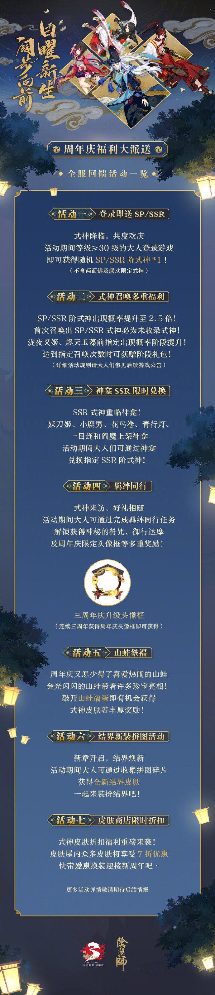阴阳师3周年庆是哪天?三周年庆典活动有哪些?还不清楚的玩家们,来看看小编给大家带来的阴阳师三周年庆典活动详细介绍吧!