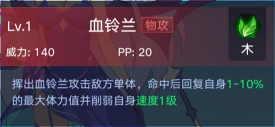 1、血铃兰:攻击单体,必中,物理伤害;