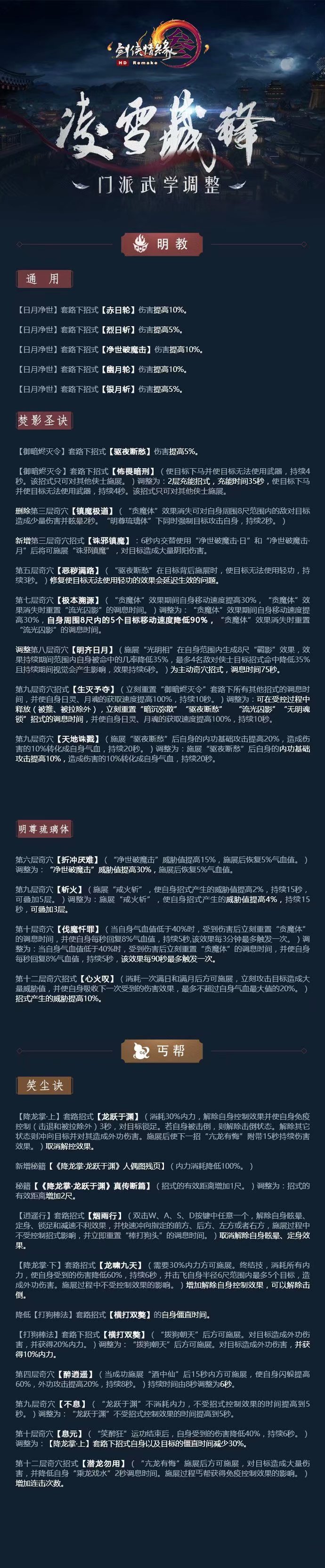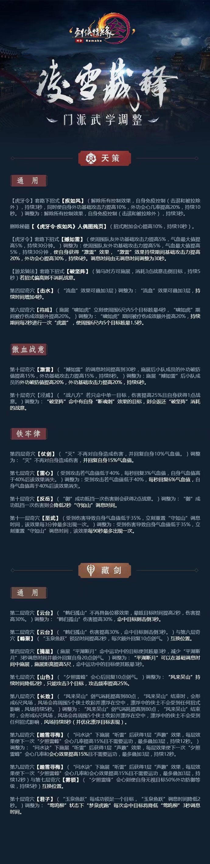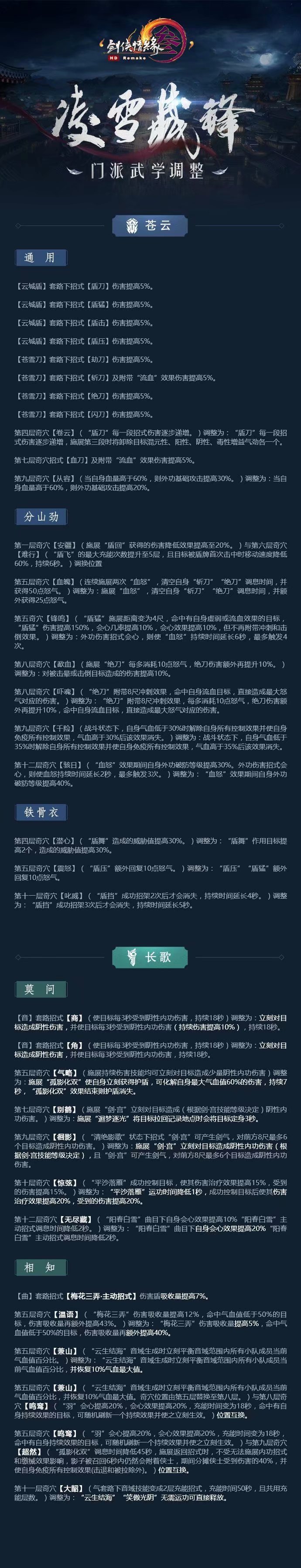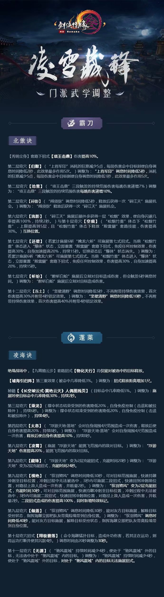 2019剑网3凌雪藏锋10月24日全人物技改图文分析