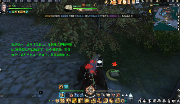 说明:这个任务触发是最简单的,直接走过去按F拾取就能触发了。也是这次更新为数不多不用做小游戏的奇遇。纯享受剧情就行啦。任务最后会给一个3次+身法BUFF的道具。我是直接就丢掉了。。。任务过程中有一个躲小兵的流程,不用躲,直接走就行了。被发现可以打死小怪。