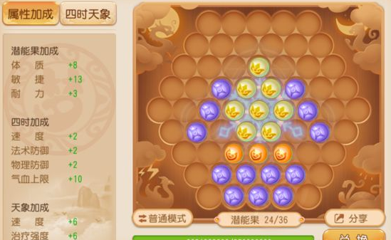 敏捷是最“贵”的属性,所以搭出四时和天象之后,额外的潜能果都选择了敏捷。