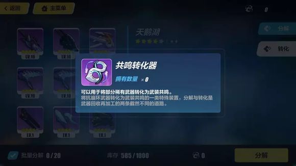 转化器的主要作用为将部分稀有武器转化为武装共鸣。