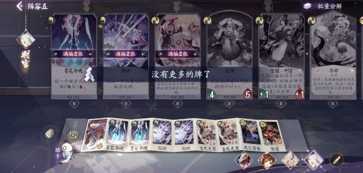 判官的话三费形态不带带二费形态一张,生死无常去一张带觉醒一张。想要再慢一点的可以带两张消灭式神去一张勾绝。