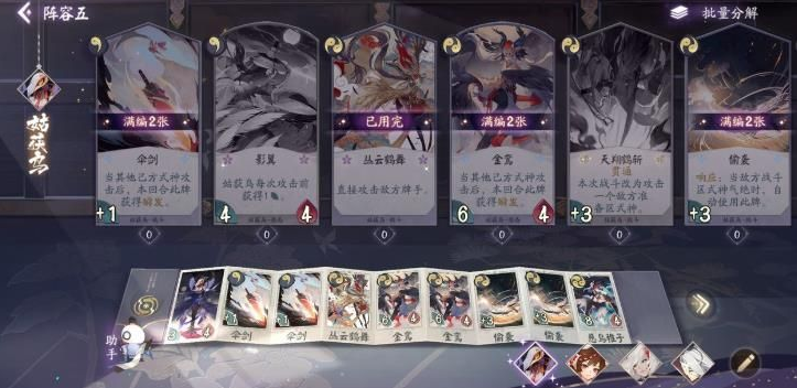 例如咕咕鸟三费形态可以不带,带两张一费形态 偷袭只带一张 二费形态可以去掉再带一张丛云鹤舞斩杀作用。