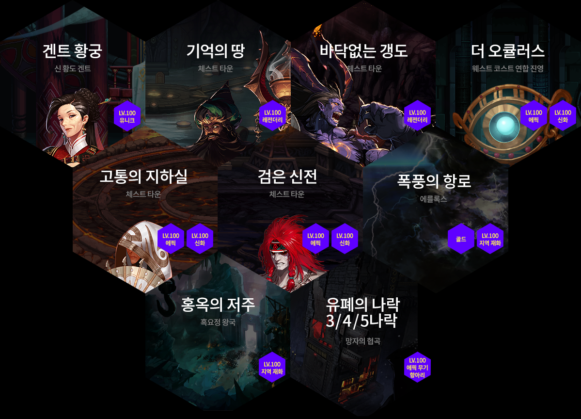玩家可以通过西海岸联盟 - 奥秘之眼,切斯特城镇 - 苦痛的地下室,切斯特城镇 - 暗黒神殿及奥秘之眼:复活神殿特殊地下城去获得史诗和神话装备,国服副本名称待定。