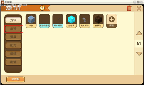 首先我们必须要已经解锁了白马王子头部装饰和相关的衣服,进入插件库,创建一个新生物插件: