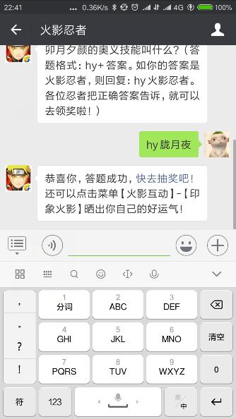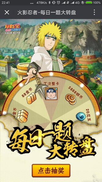 腾讯旗下火影忍者手游每天都会在微信公众号为大家发出有趣并且简单的问题让每一个玩家回答,获得丰富的奖励,可以进行抽奖,这里小编为
