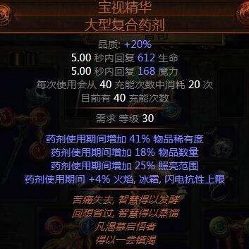 打宝药,本BD核心药剂,正火配合天赋里的心灵升华可以实现全程空蓝,打宝药就不会因为生命值法力值均回满而消失。4%的全抗上线在药侠天赋加成下是5%全抗上限。