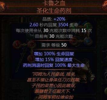 卡鲁之血,生命药剂:高回血以及持续时间结束后回满全部生命值。