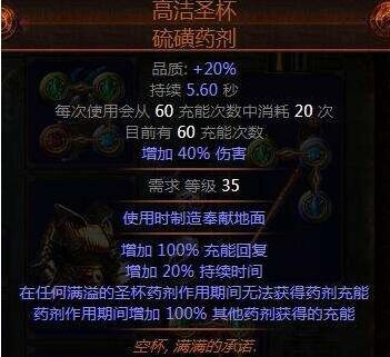 高洁圣杯,硫磺药剂:为其他药剂提供充能回复以及40%的increase增伤。