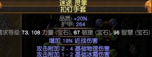 手套:扣钉手套,其他金手套也可以,优先攻击速度,其次物理点伤,血量、抗性,受伤释放,不朽-时间延长-闪电魔像。