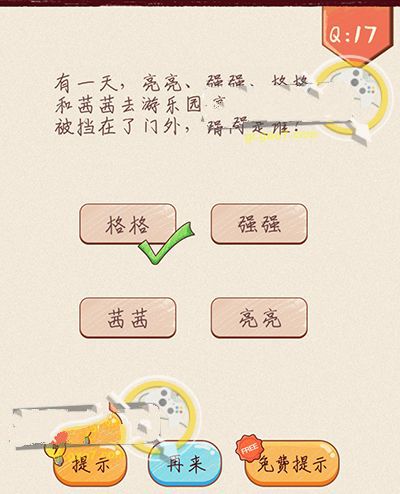 有一天,亮亮,强强,格格和茜茜去游乐园,却有一个人被挡在门外了,请问是谁?