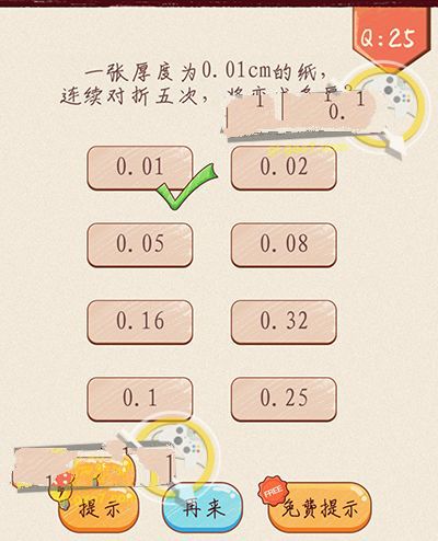 一张厚度为0.01cm的纸,连续对折5次,将变成多厚?