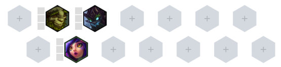 或者我们也可选择奥恩 狗熊 狗头组成2雷霆2守护神羁绊,雷霆羁绊在前期的收益很高,加上守护神的坦度加成,同样是一个出色的过渡体系。同样这里可以将部分装备给予奥恩或者狗熊来提升过渡表现,当然狗熊也可留到中期,与卡尔玛配合打出出色的战力。